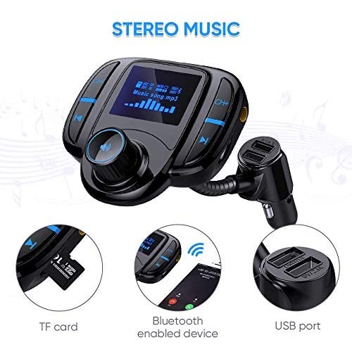 - ?DUAL USB CHARGING?The Bluetooth radio transmitter for car is with 2 USB ports that can intelligently identify devices and charge two devices simultaneously.