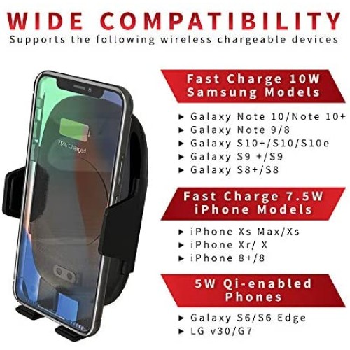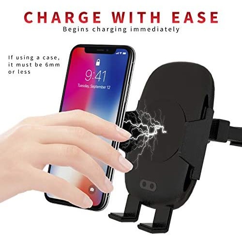 - AUTOMATIC CLAMPING WIRELESS CAR CHARGER MOUNT REDUCES DRIVER STRESS ? Get into your car; place phone on car phone holder charger; drive off; grab it back from the qi wireless charger mount, once at destination; your smart sensor car wireless charger opens as you bring your hand closer and shuts on withdrawal; release wireless charger car mount by touching base button ? done