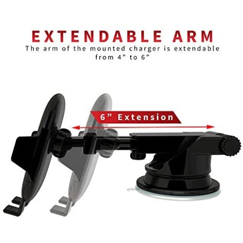 - SAFETY-ENGINEERED LINE OF SIGHT DRIVING ? the low profile wireless car charger mount fitted with its telescopic arm provides uncluttered view of the road
