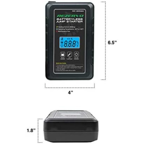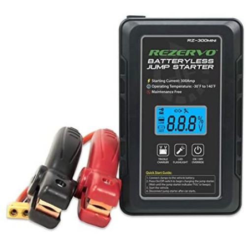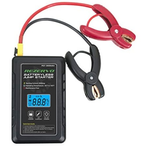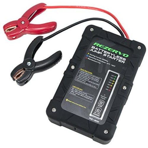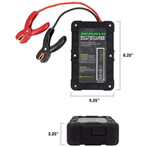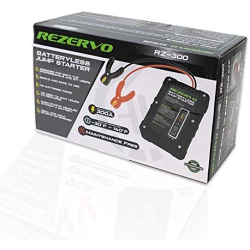 Rezervo Batteryless Jump Starter - Jumpstarts Vehicles Using Ultracapacitor Technology for Cars, Trucks, Boats, RVs, ATVs, and other Gas Engines (RZ-300 (300A))